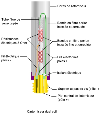 | Coupe d'un cartomiseur dual coil | Modèle cartomiseur seul | Modèle réservoir tank et cartomiseur |